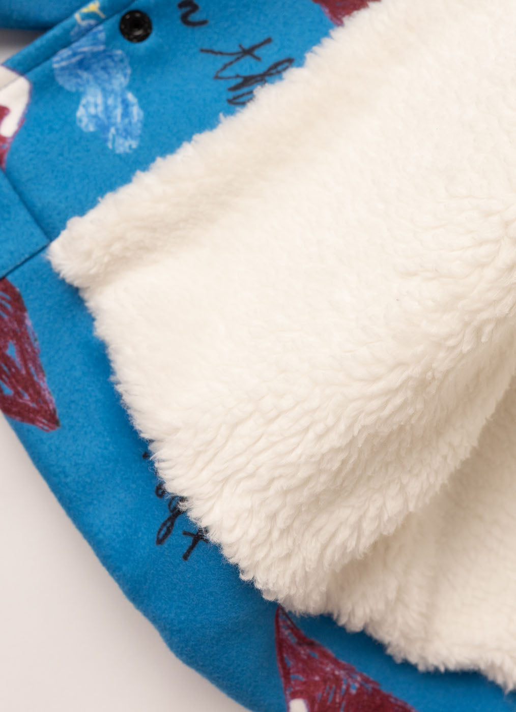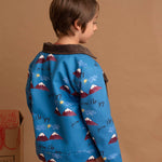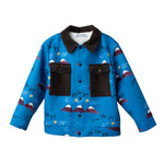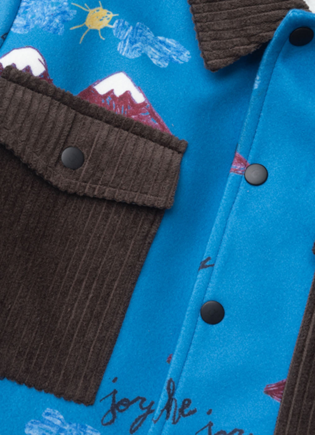 Nuestra chaqueta estilo worker azul con montañas y el lema Join the Joy es una pieza versátil que aporta personalidad a cualquier look. Una prenda que llevarás cada día, resistente y creativa.
