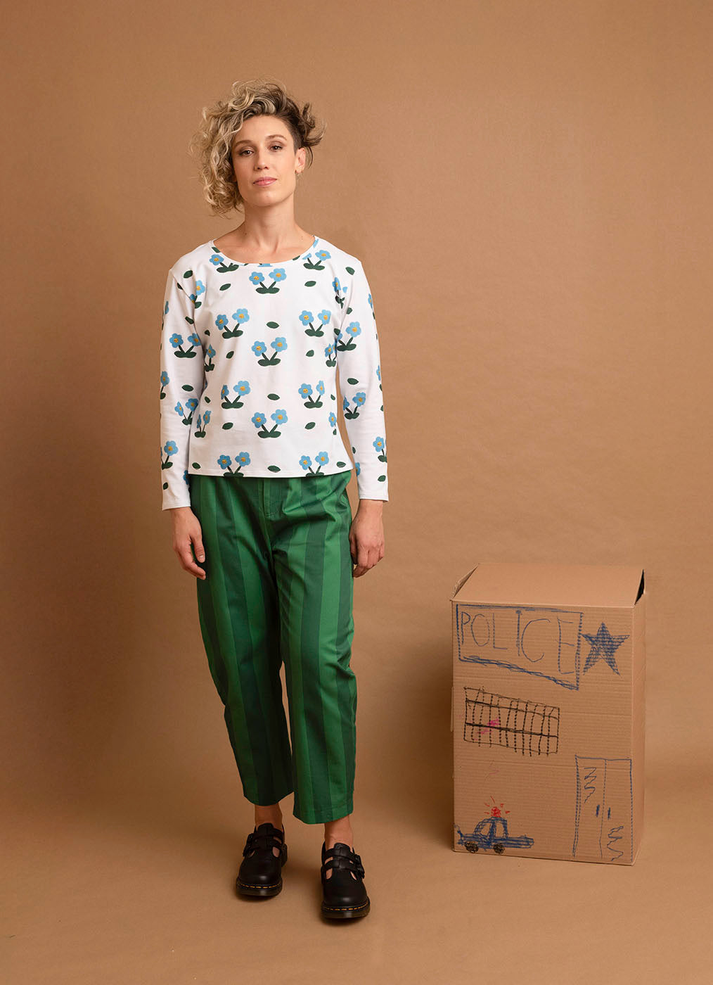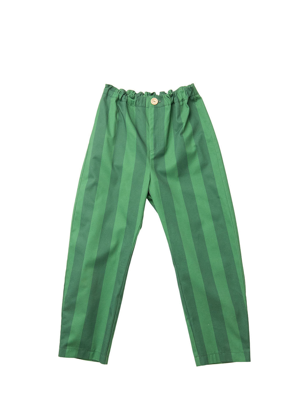 Este pantalón recto de rayas marrones es un básico creativo de la colección The Cheeky Way. Confeccionado en algodón orgánico certificado GOTS, es versátil, cómodo y perfecto para combinar en cualquier look.