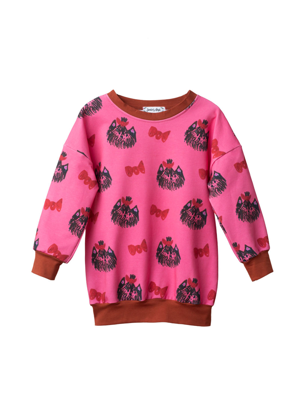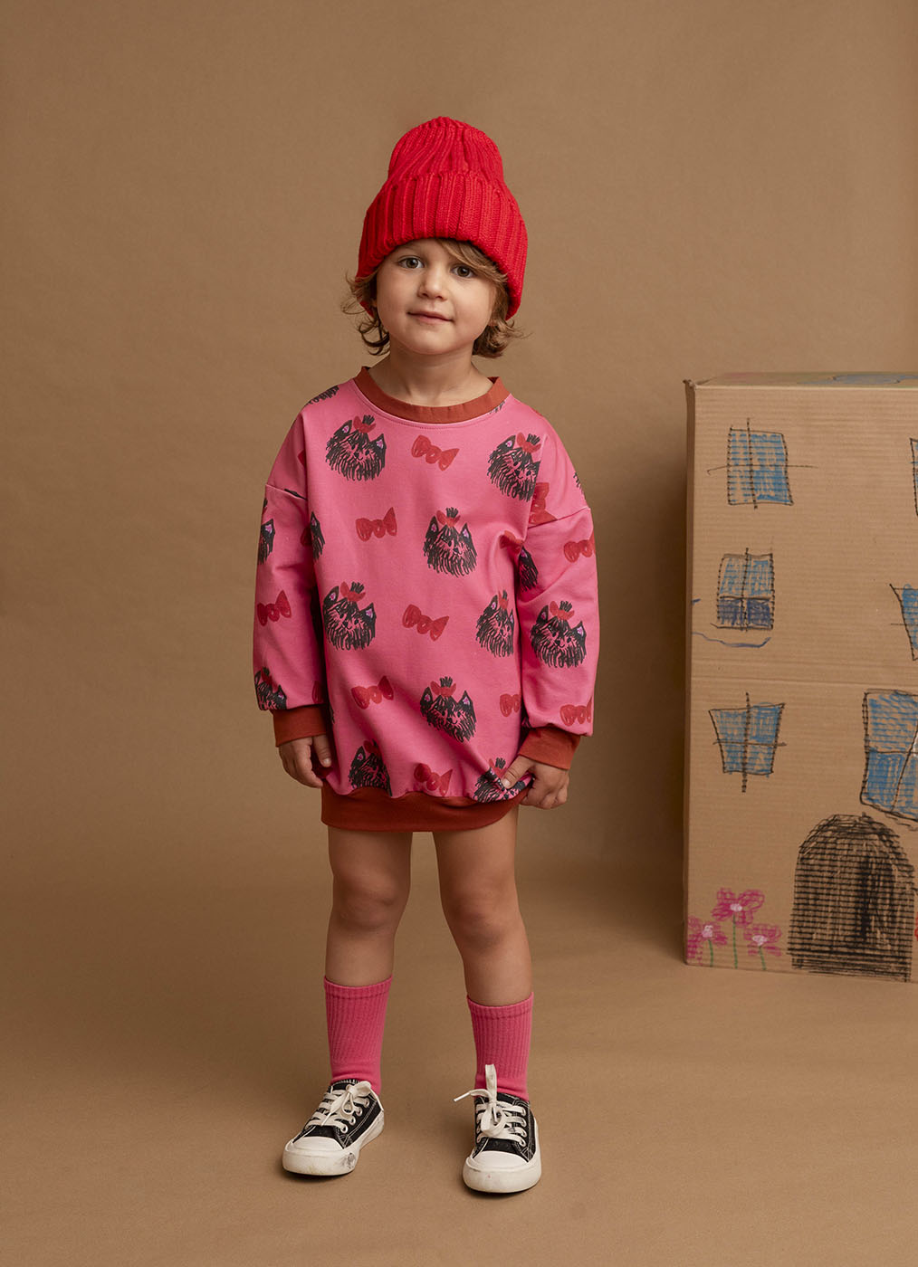Este vestido sudadera infantil con ilustración de Juno es tan versátil como especial. Confeccionado en algodón orgánico, permite jugar, correr y crear sin perder el estilo. Tal y como hacía nuestra perrita.