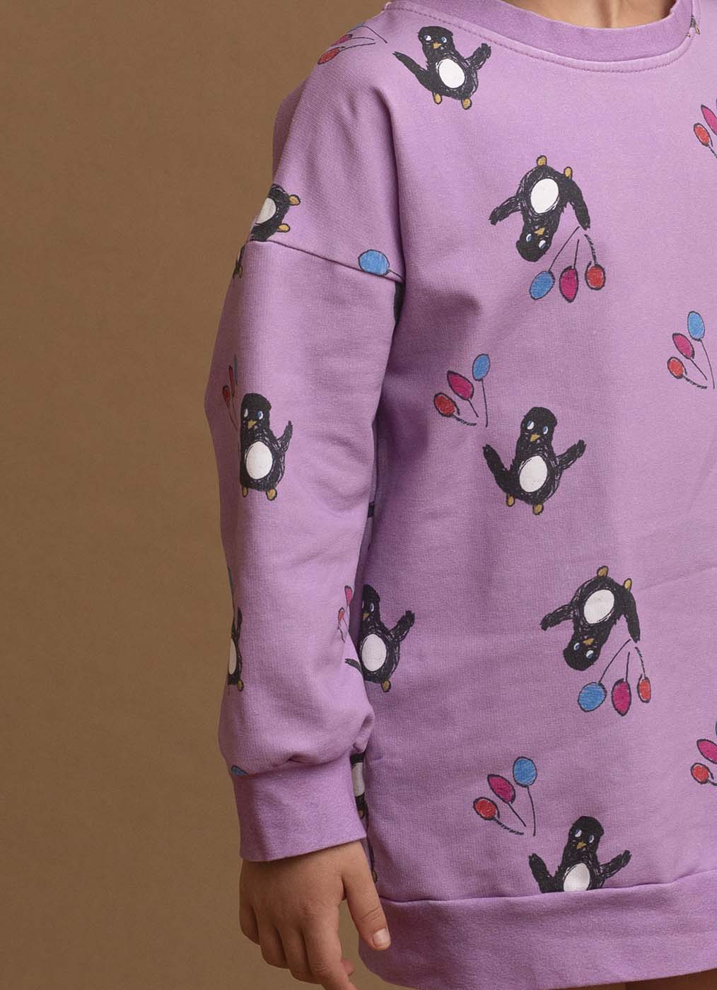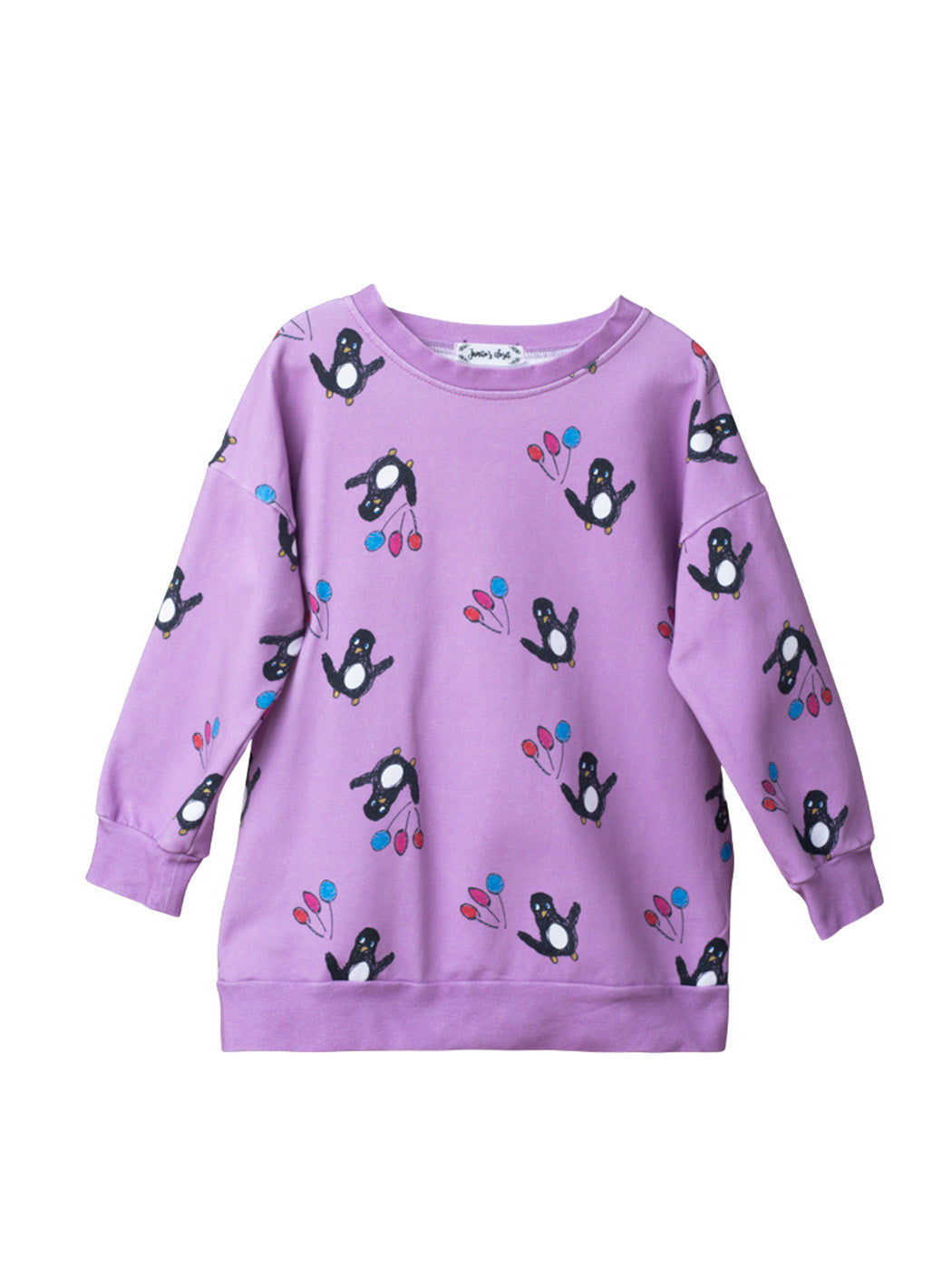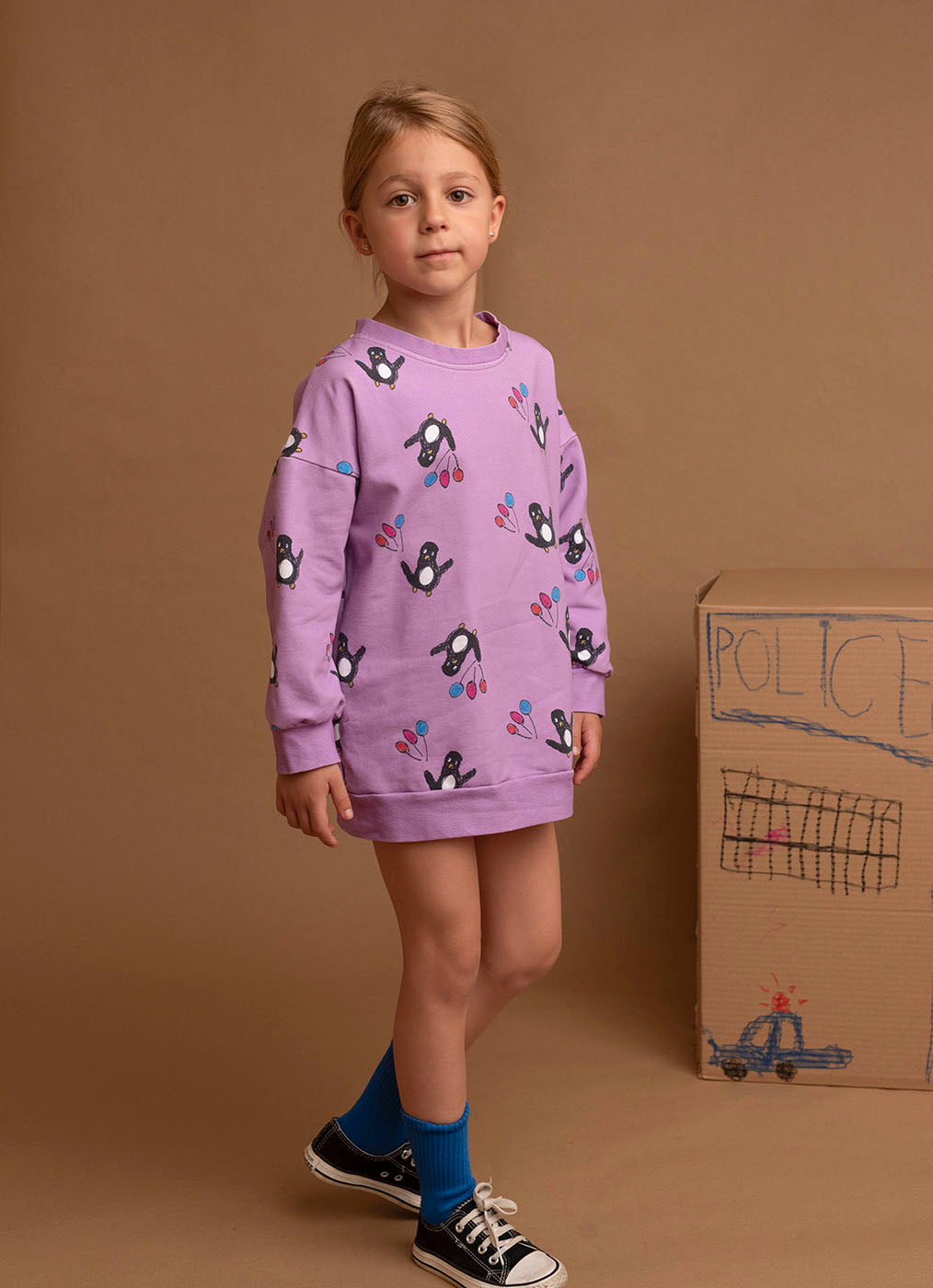 Un vestido sudadera cómodo y alegre con un estampado de pingüinos festivaleros diseñado para acompañar cada travesura. Con algodón orgánico GOTS que abriga y cuida la piel.