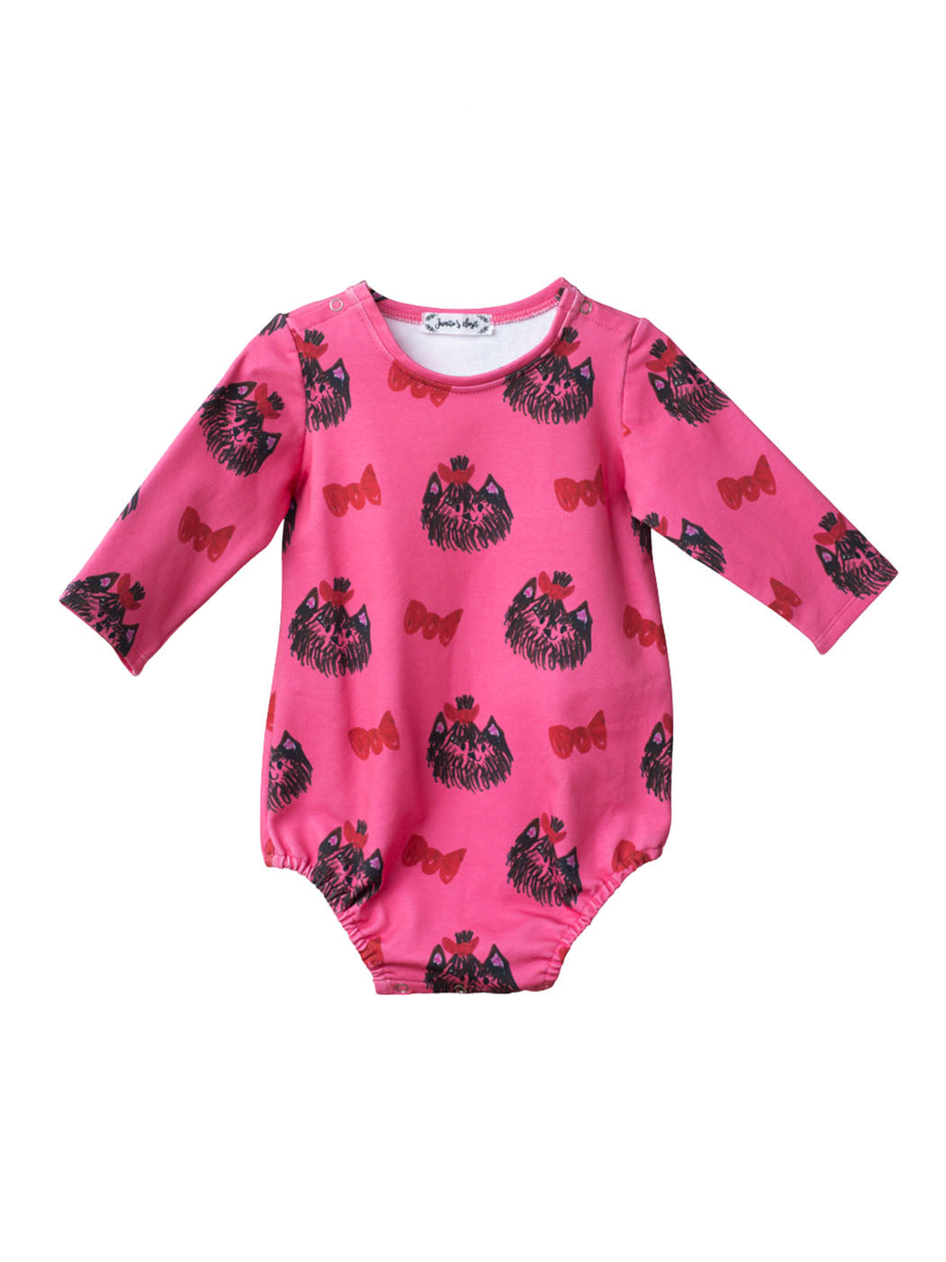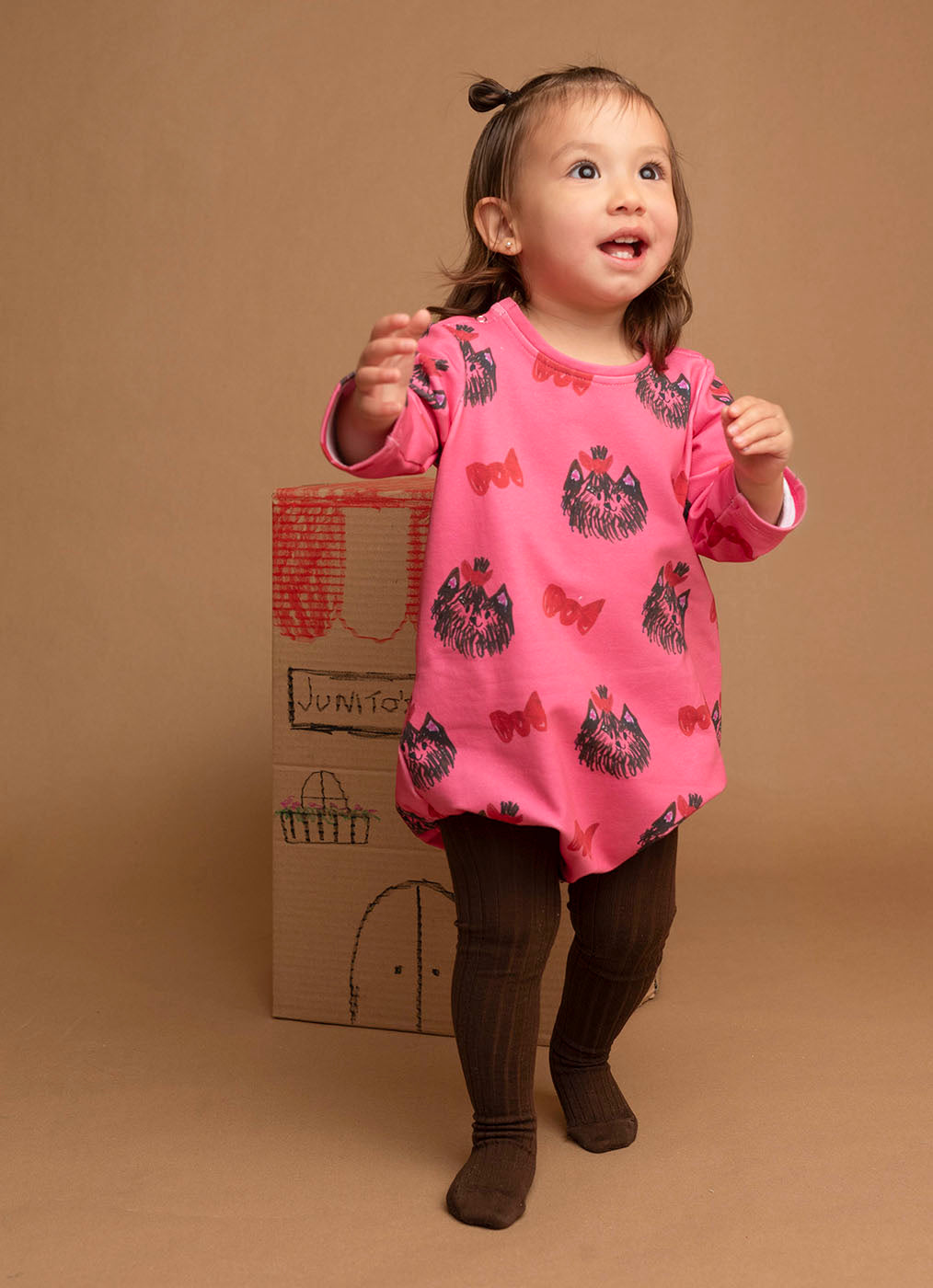 Este pelele rosa celebra a Juno, la perrita que inspiró nuestra marca. Hecho con algodón orgánico certificado GOTS, es cómodo y lleno de ternura. Un diseño único que transmite historia y amor en cada puntada.
