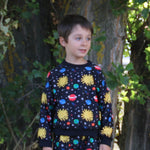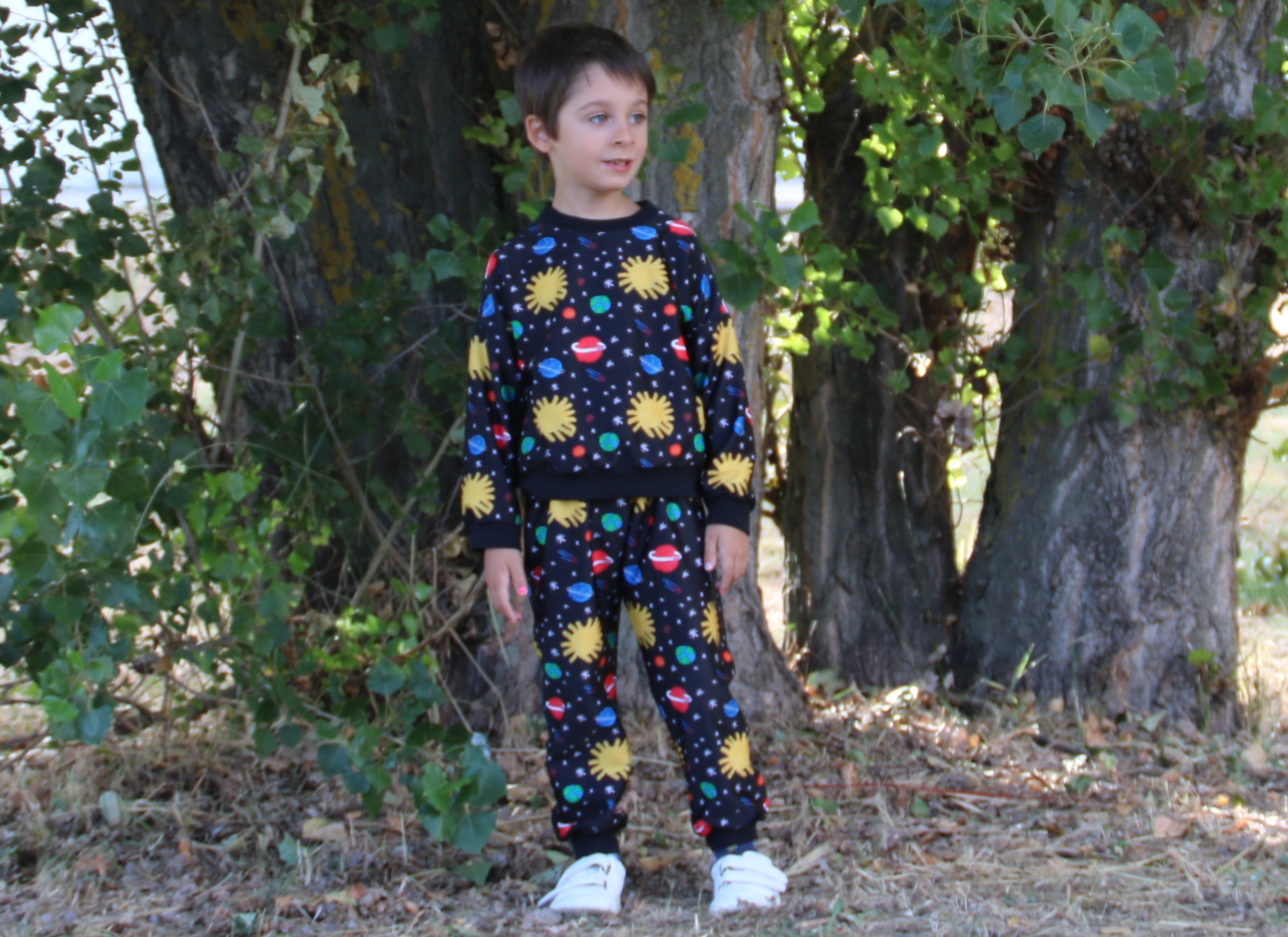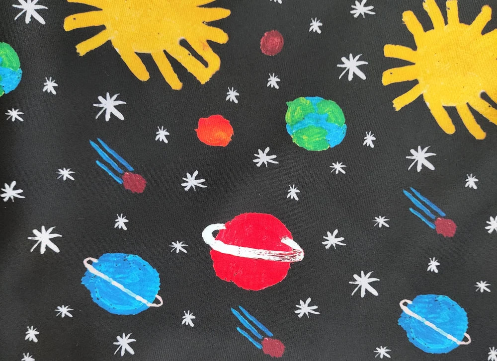 Chándal confeccionado en tela perchada sudadera con estampado propio, es un diseño original nuestro. Donde los los dibujos han sido pintados por el hijo de la diseñadora y como ves puedes apreciar las pinceladas hechas por el niño.
