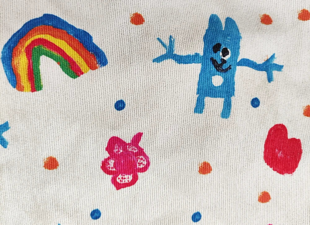 Pantalón confeccionado en pana aterciopelada con estampado propio, es un diseño original nuestro.  Donde los los dibujos han sido pintados por el hijo de la diseñadora y como ves puedes apreciar las pinceladas hechas por el niño.