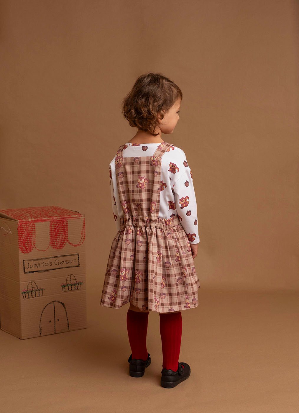 Este pichi beige con estampado de ardillas y bellotas está pensado para acompañar a tu peque en aventuras infinitas. Hecho en algodón orgánico GOTS, es tan suave como divertido y perfecto para el día a día.