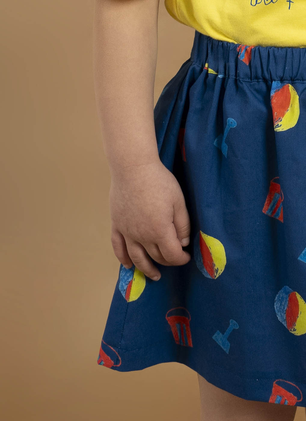 🏖️☀️ Did someone say beach? This royal blue skirt with a print of sand shovels, buckets, and beach balls is a fresh and versatile piece that will prolong any adventure under the sun. Made from soft cotton, it combines comfort with a unique design that will invite your little one to build castles and jump over waves.