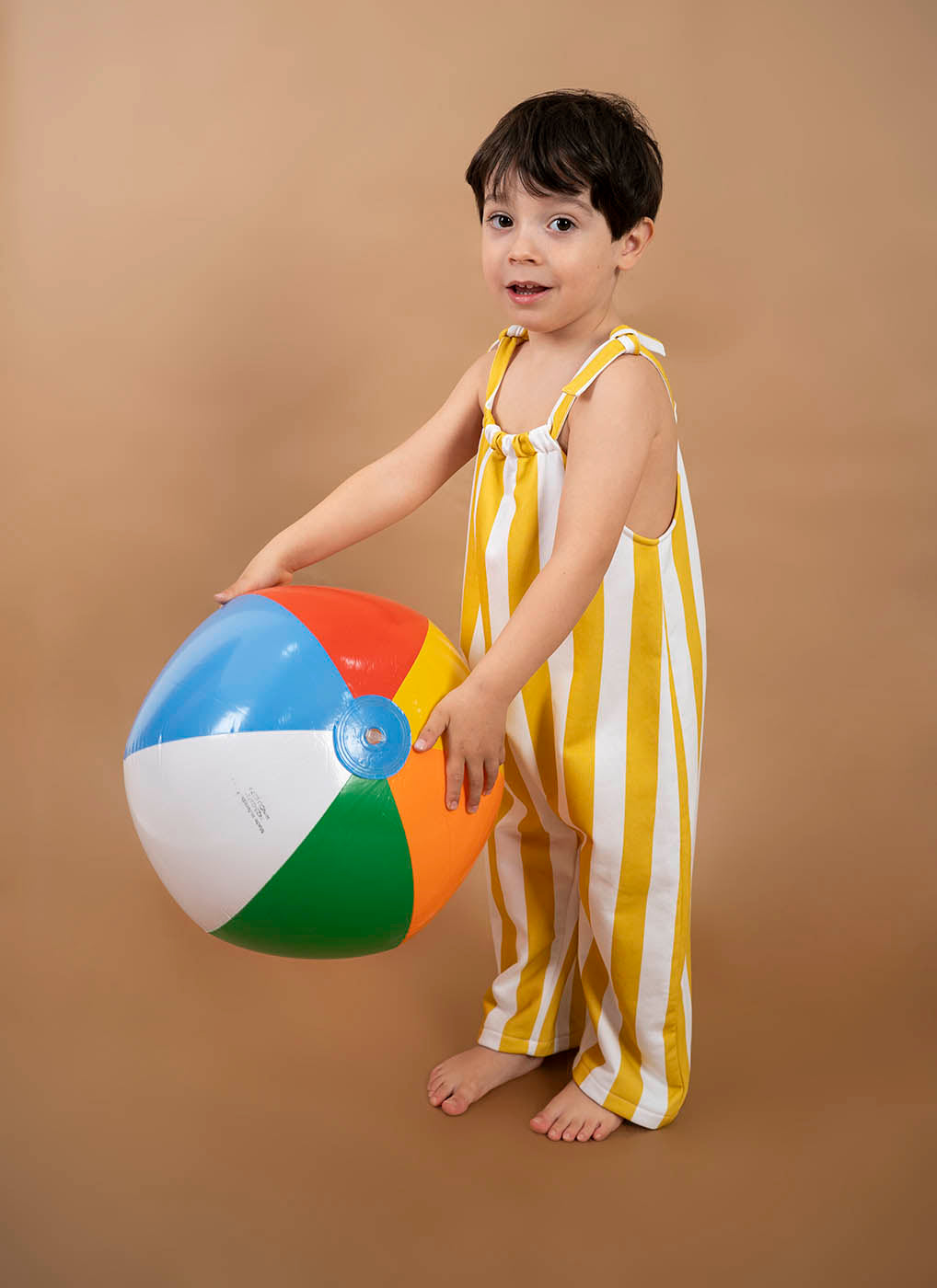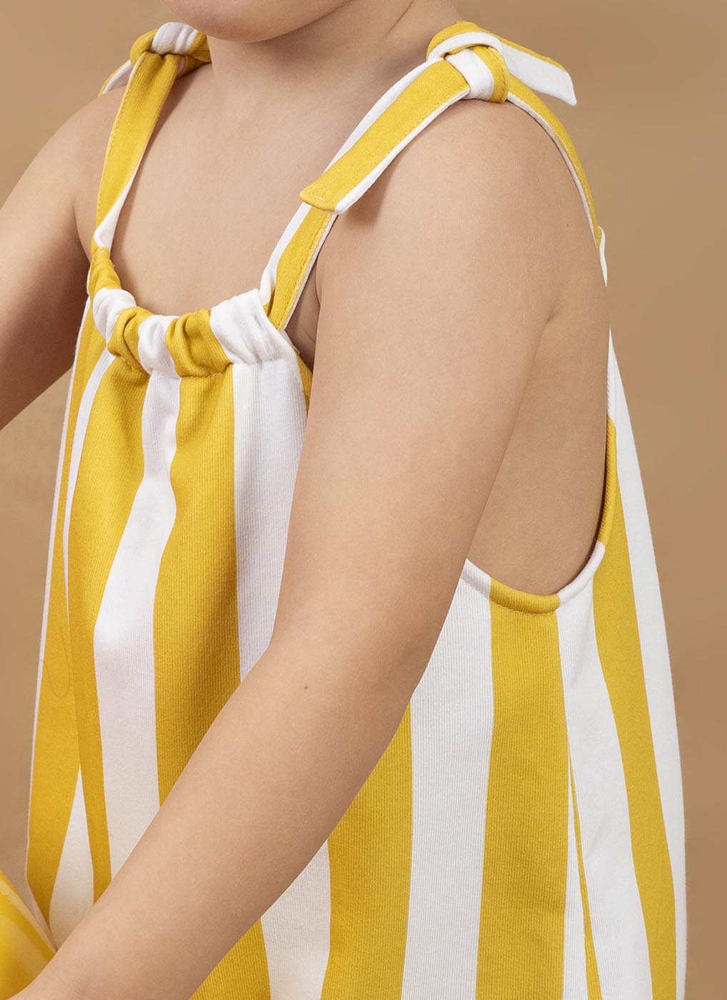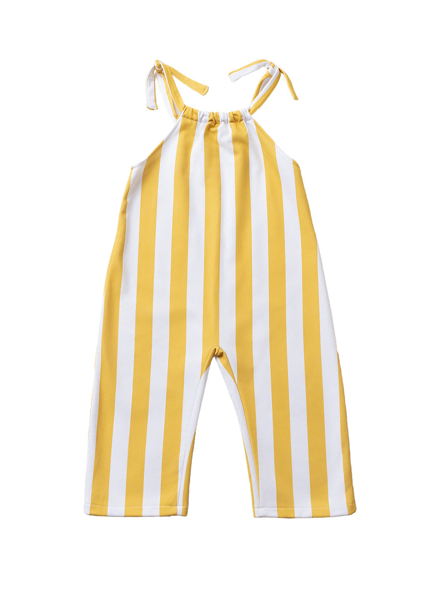 These wide yellow striped overalls combine comfort and effortless style. Made from soft, lightweight cotton, they are perfect for playing, exploring, and moving freely, capturing the energy of summer.