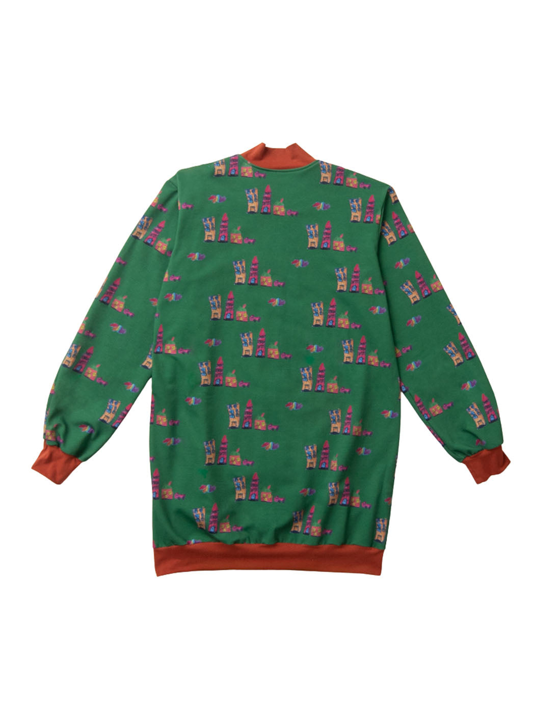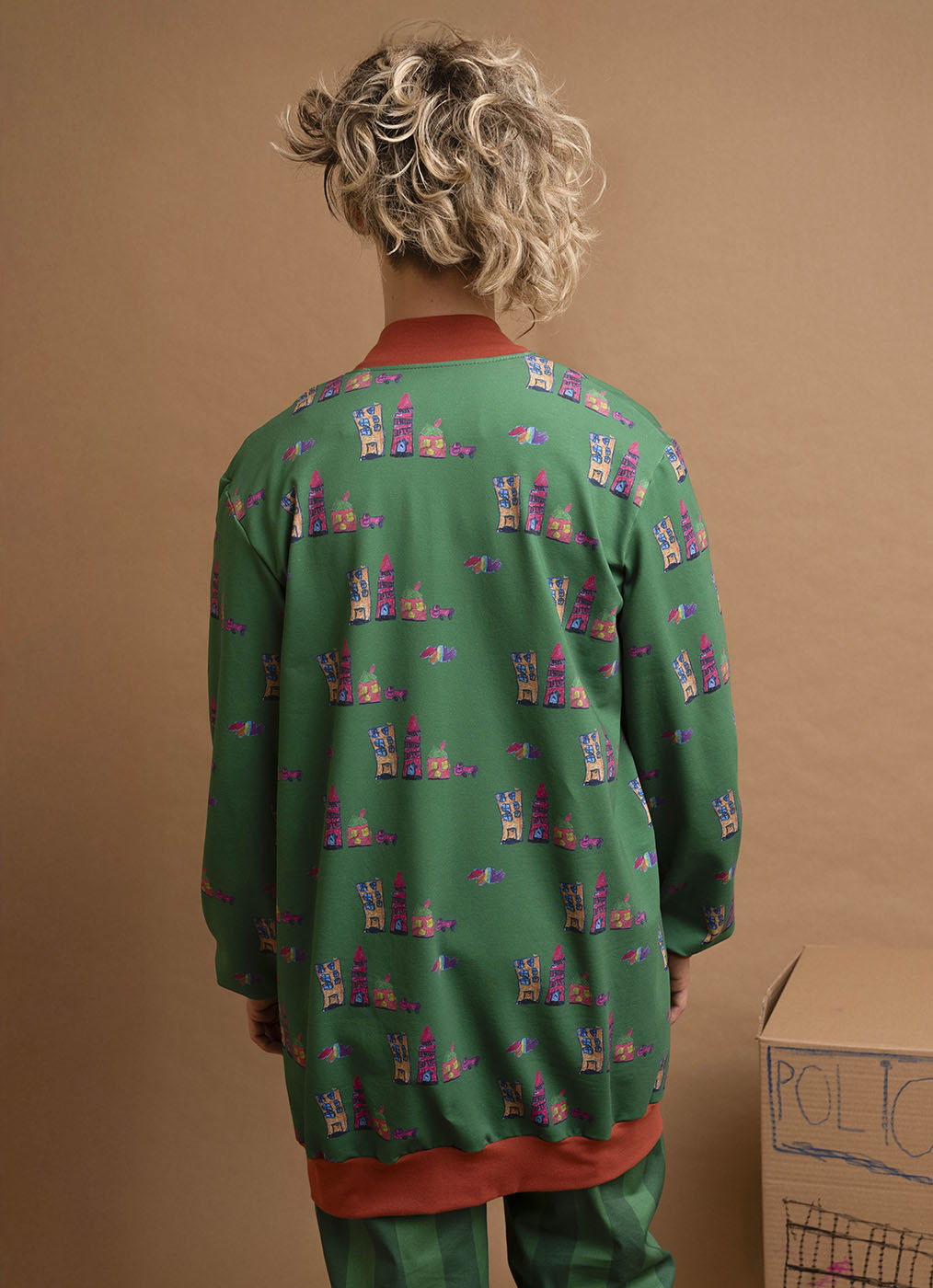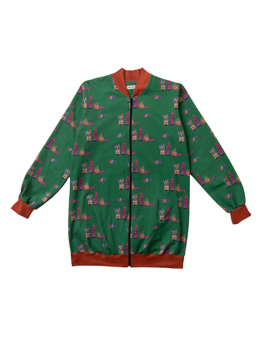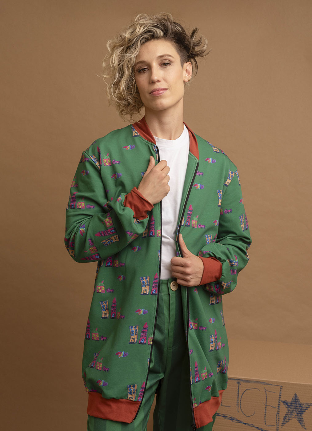 Esta chaqueta bomber larga verde con estampado de casitas es la prenda estrella de The Cheeky Way para mujer. Cómoda, versátil y confeccionada en algodón, es perfecta para darle un aire creativo a tu día a día.