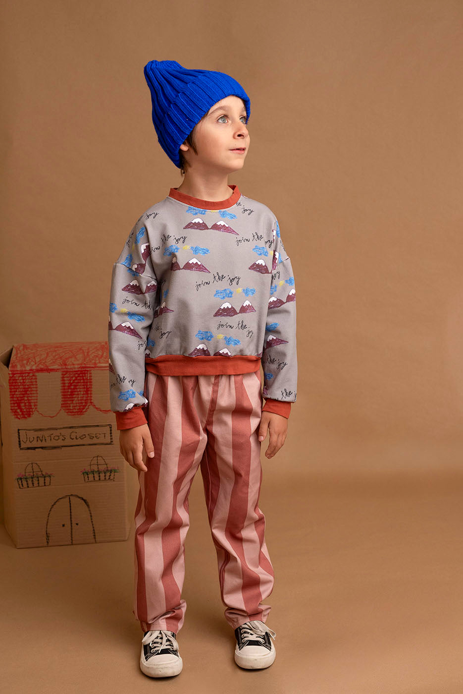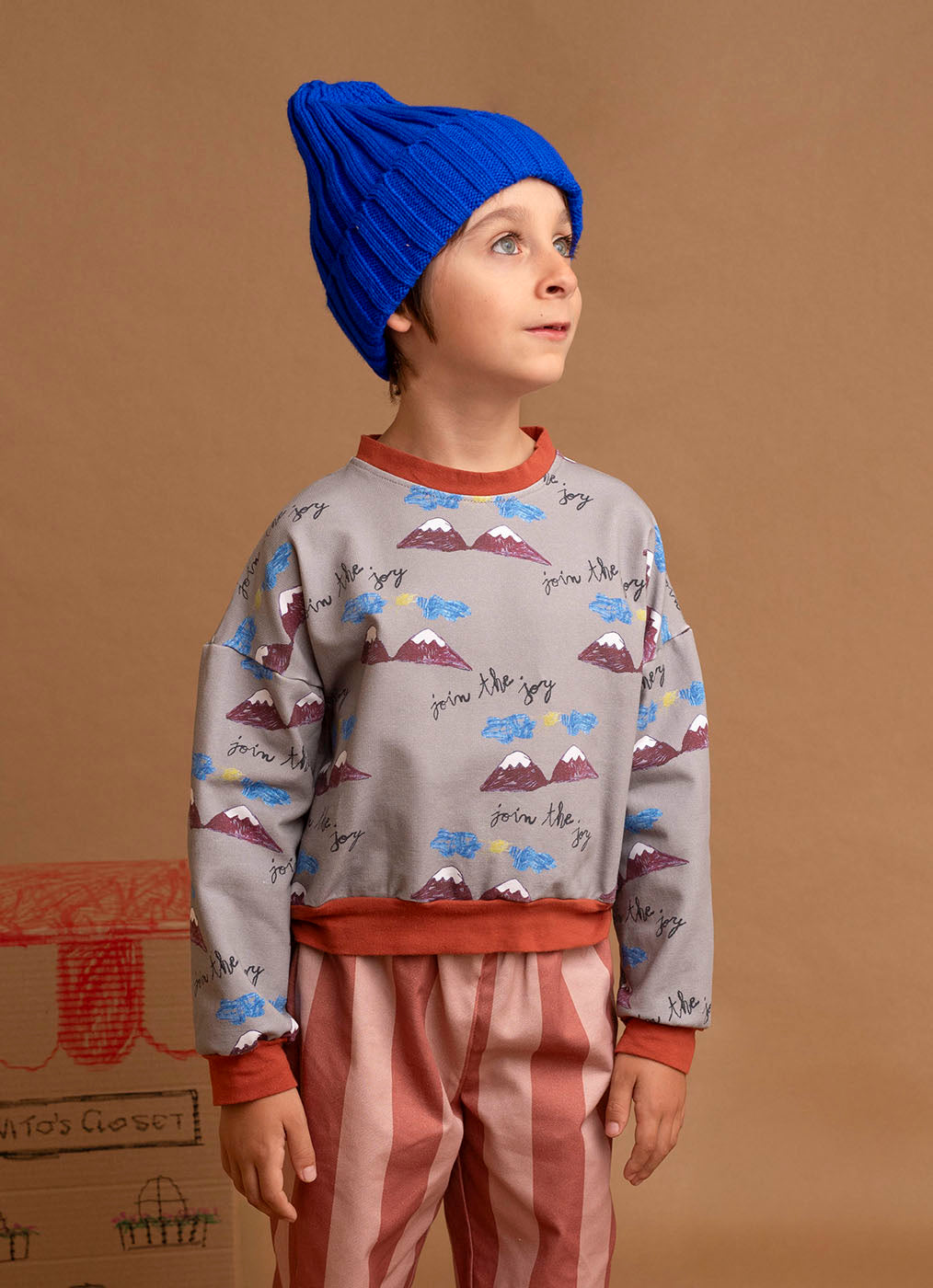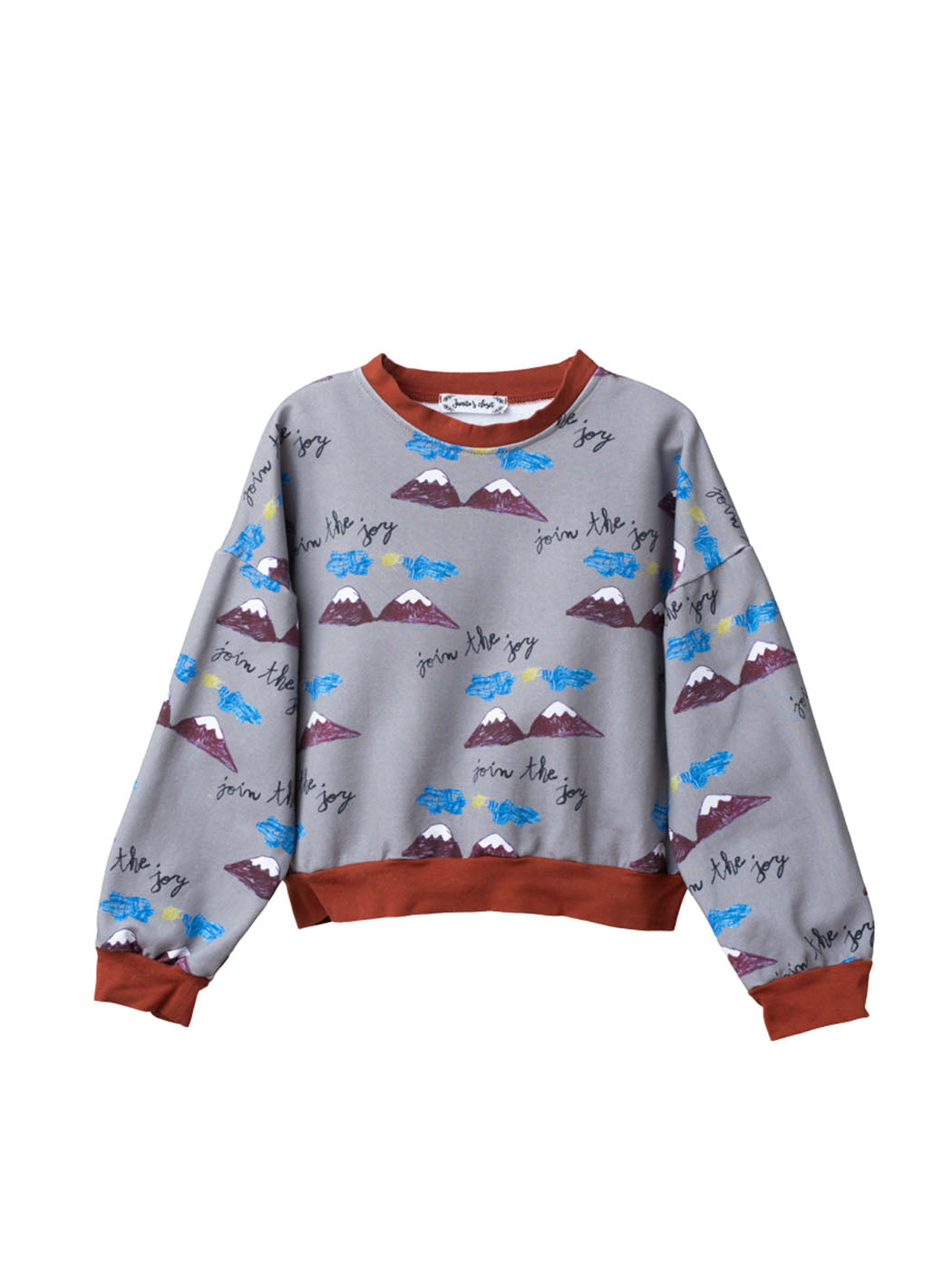 Esta sudadera gris no tiene nada de aburrida, une montañas, aventuras y nuestro claim “Join the Joy”. Confeccionada en algodón certificado Oeko-Tex, es un must para looks alegres y cómodos.