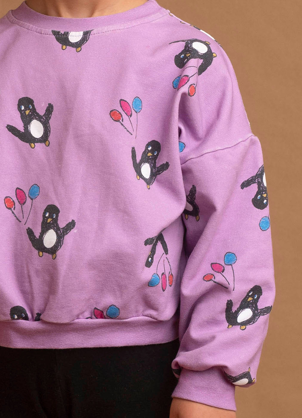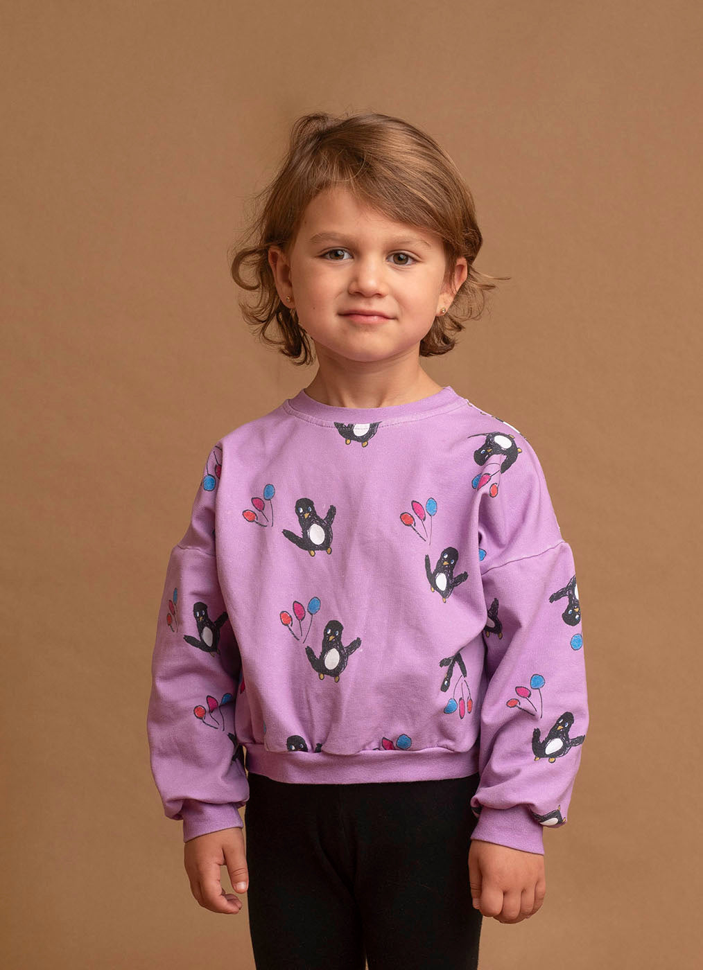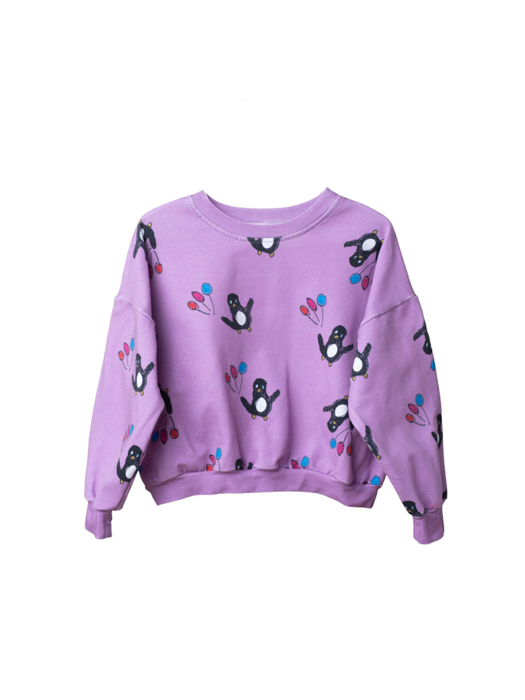 Esta sudadera morada con estampado de pingüinos de The Cheeky Way es una de esas prendas que no pasan desapercibidas. Hecha con algodón certificado Oeko-Tex, es tan suave y cómoda como alegre, perfecta para que tu peque juegue sin límites.